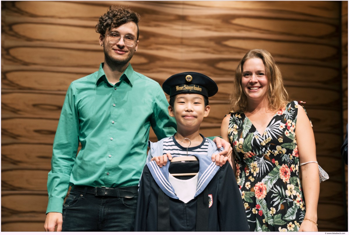 In time for our World Online Tour, the 25 new boys receive their hats from President Gerald Wirth, their uniforms from deputy head, Professor Klaus Kühberger.Due to the Coronavirus restrictions, this year's ceremony was held at MuTh.